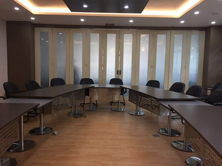 Pekerjaan ini meliputi pekerjaan lantai diubah ke lantai parket kayu,pembuatan meja dengan cutting plat, meja didesain dapat digeser sesuai kebutuhan,pekerjaan plafon dengan dropceiling,mebel finishing hpl,cutting stiker logo PJB,pencahayaan lampu yang merata diruangan.