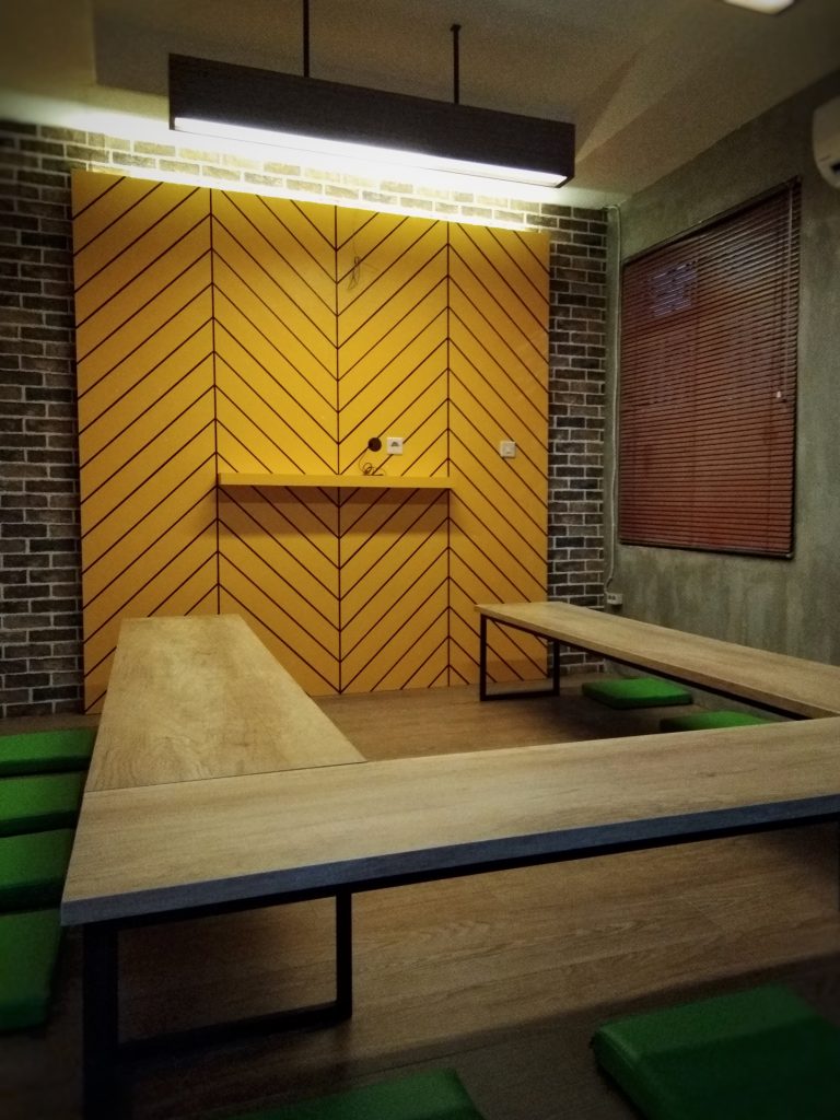 Kantor anak-anak muda dengan bsinis online di Mojokerto, konsep industrial dengan kerja nyaman dan santai tapi pasti. Interior dibangun dengan memanfaat rumah lama dan usang yang tidak ditempati, maka kami menyiapkan pra konsep industrial dengan penggantian lantai, perbaikan dinding, perbaikan elektrikal lampu.