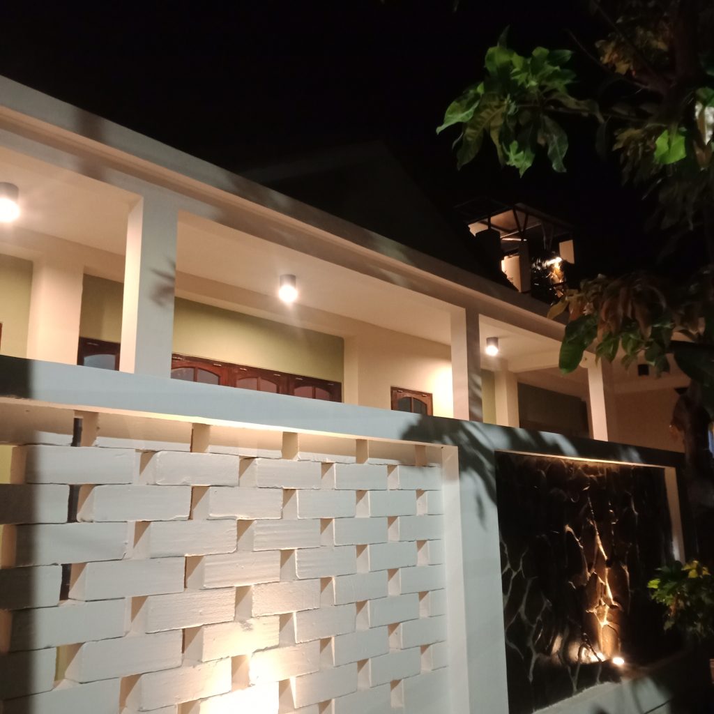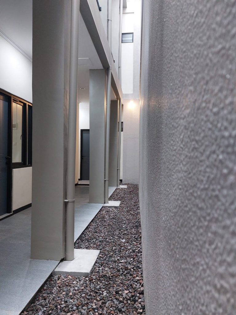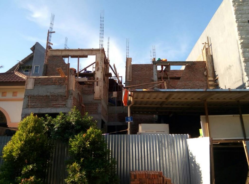Pembangunan mulai lahan kosong sampai berdirinya bangunan dua lantai dengan 19 kamar dan masing2 kamar terdapat kamar mandi dalam, tampak depan terlihat satu bangunan dibelakang terbentuk 2 bangunan dengan sekat lorong taman sebagai ruang pencahayaan dan sirkulasi udara semua kamar kos agar penghuni aman,nyaman.