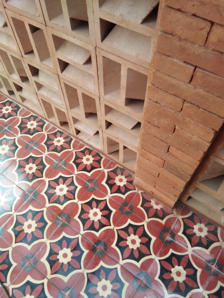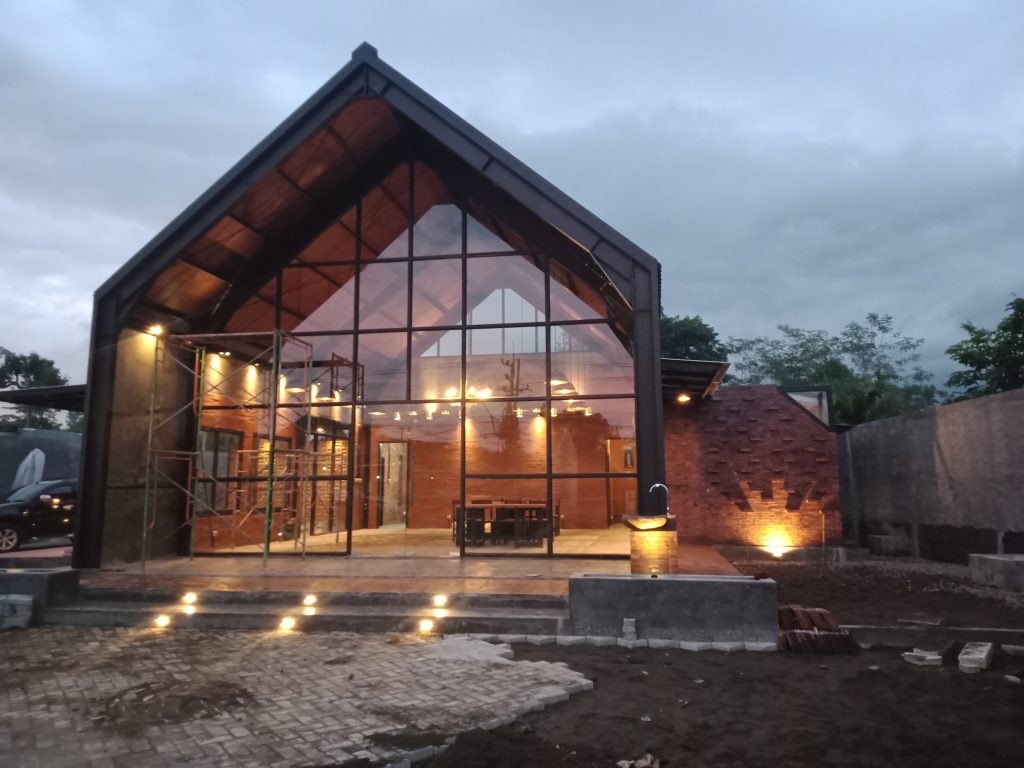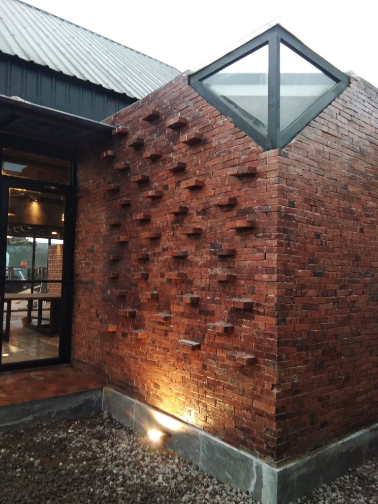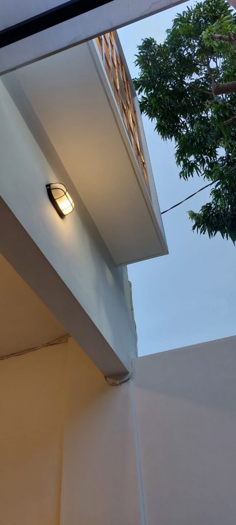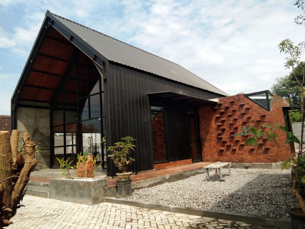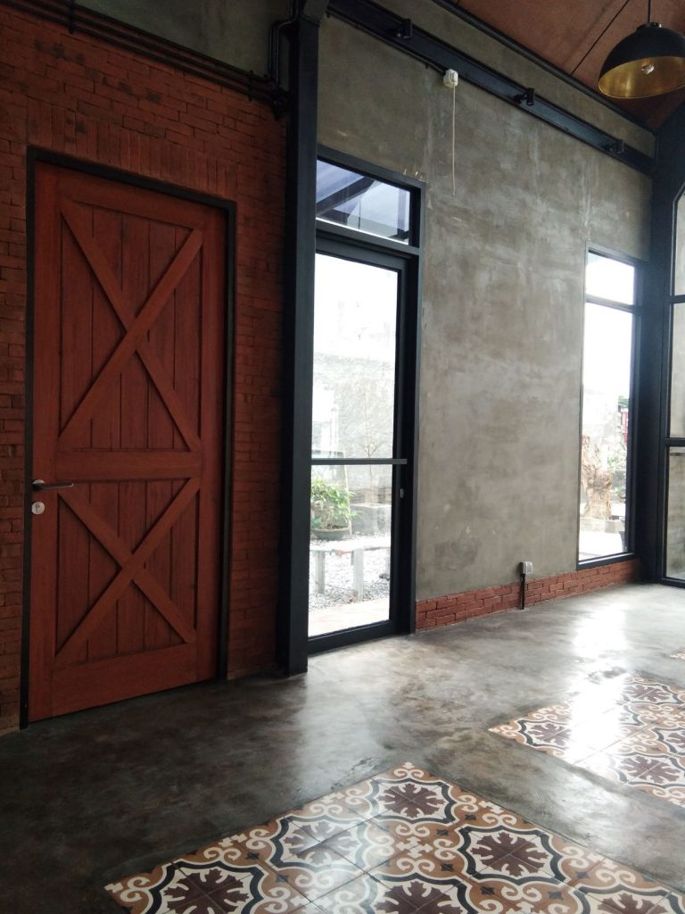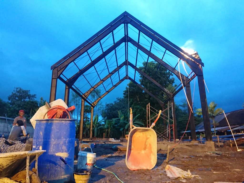PROSES PEMBANGUNAN Perpaduan material dinding batamerah MRH,Spandek galvalum,Semen mortar dengan konsep expose, Lantai semen beton, Lantai tegel, Lantai batamerah dan Instalasi listrik expose serta lampu custom handmade kuningan.