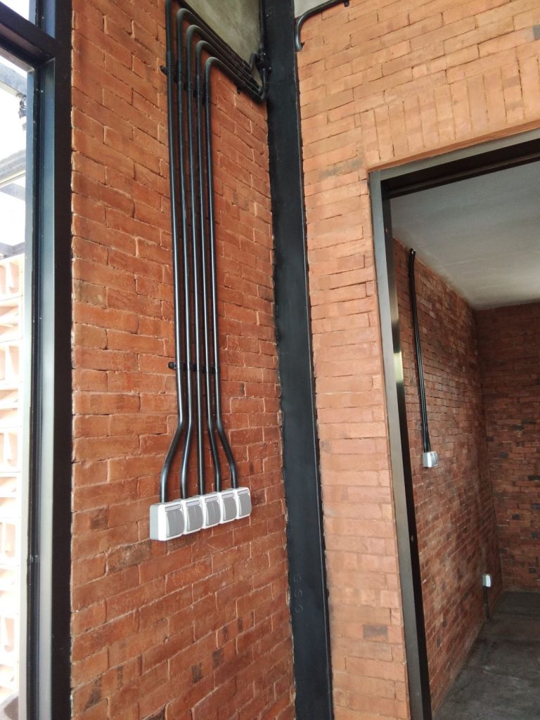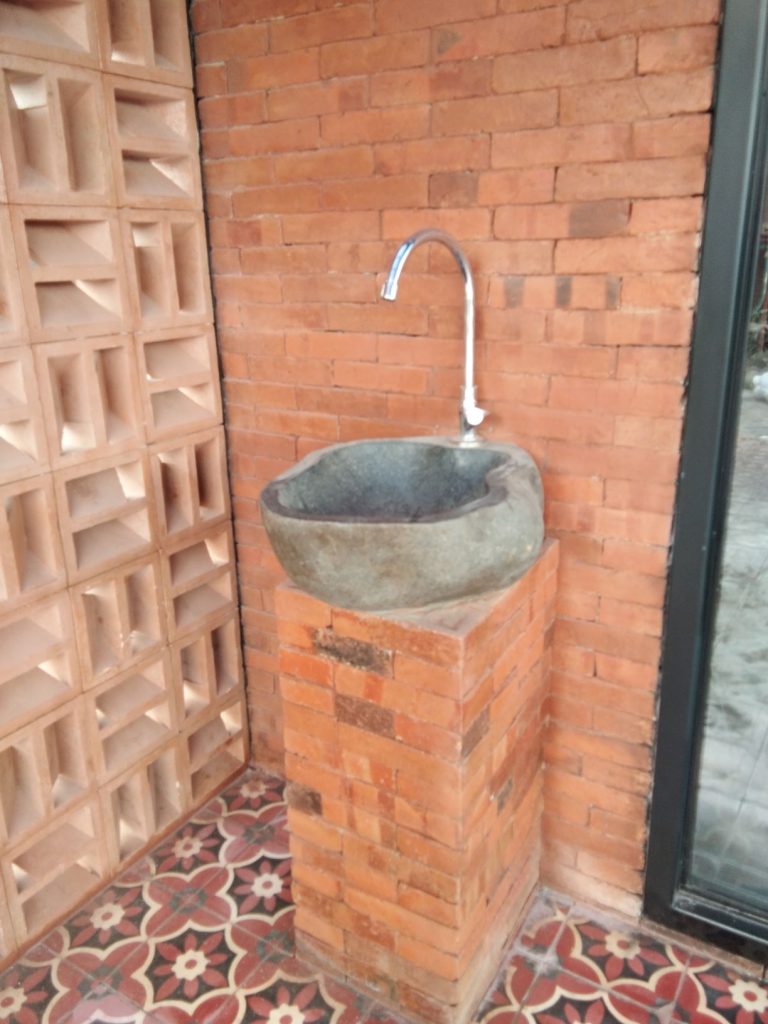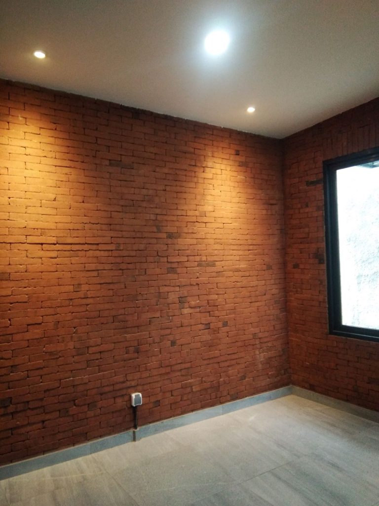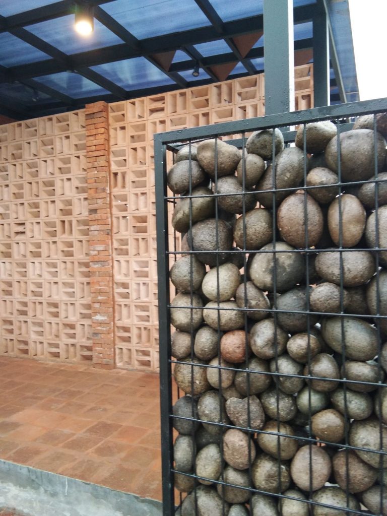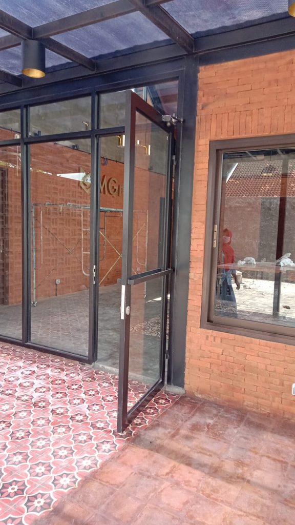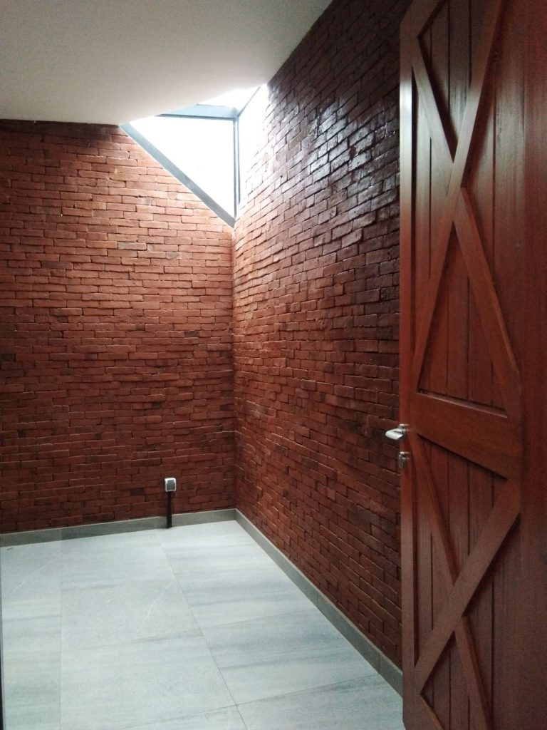 PROSES PEMBANGUNAN Perpaduan material dinding batamerah MRH,Spandek galvalum,Semen mortar dengan konsep expose, Lantai semen beton, Lantai tegel, Lantai batamerah dan Instalasi listrik expose serta lampu custom handmade kuningan.