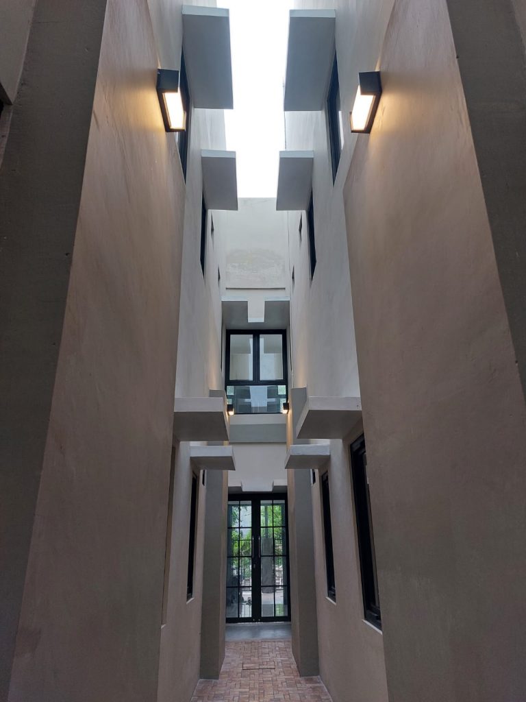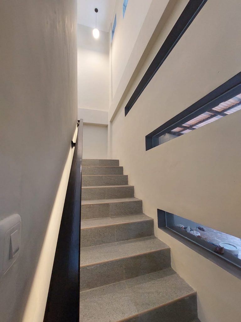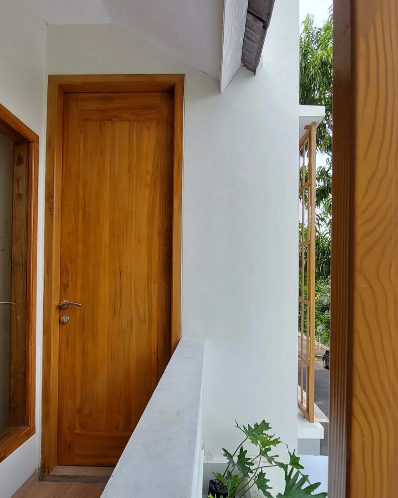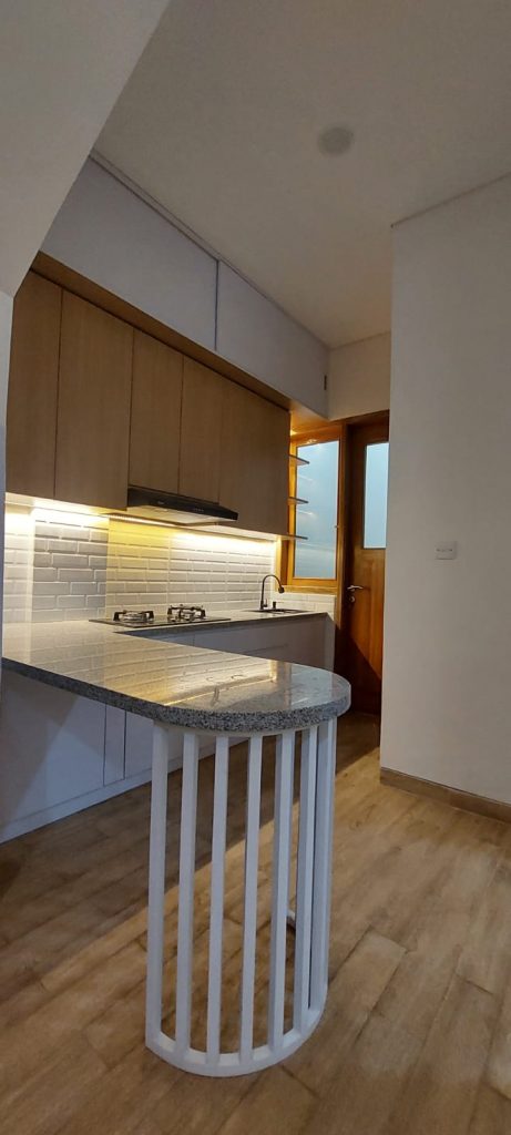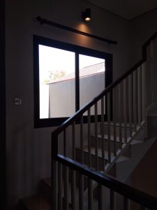 Pekerjaan renovasi rumah 1 lantai menjadi 3 lantai, rumah berkonsep rumah jepang dengan kesan sederhana tetapi tampil beda dengan perpaduan kusen dan daun pintu berbahan kayu jati, Dan disini kami mensupport kebutuhan user dengan sistem smart home yang didukung handle pintu dan saklar lampu berakses wifi agar mudah diakses lewat smartphone.