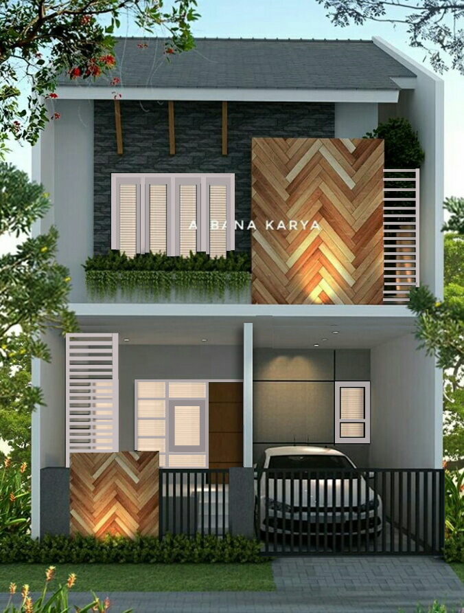 Rumah Hunian Konsep Minimalis 3 Lantai Tampak Depan 2 Lantai