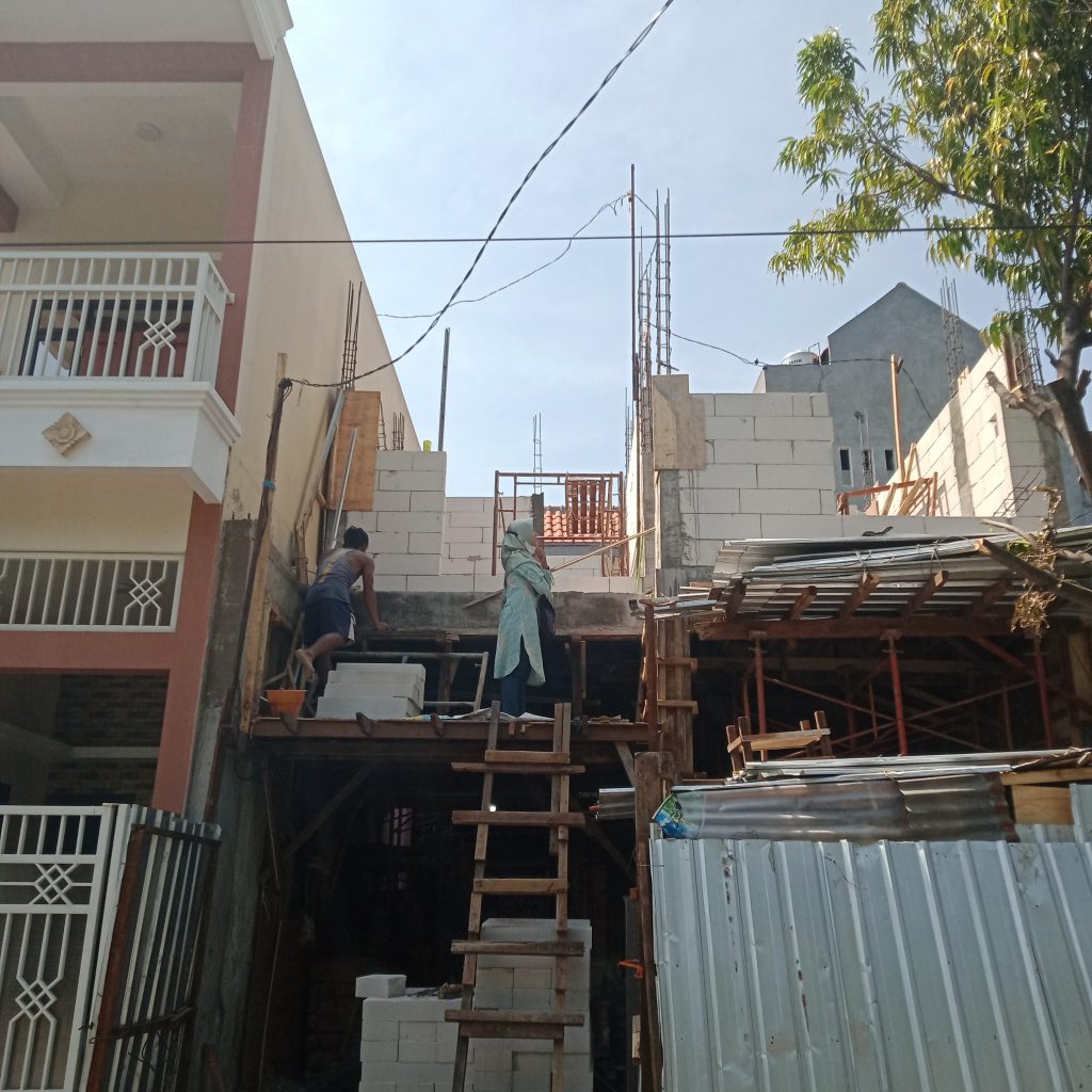 Pekerjaan renovasi dengan mempercayakan Albana Karya untuk mewujudkan rumah 1 lantai menjadi 2 lantai yang nyaman baik sirkulasi udara,pencahayaan ruang dan dengan koordinasi pra-rancangan desain bersama arsitek albana karya maka terbentuk desain gambar yang sesuai keinginan owner/user sehingga dilaksanakan pelaksana albanakarya untuk dibangun berdasar gambar,material yang sudah ditetapkan.